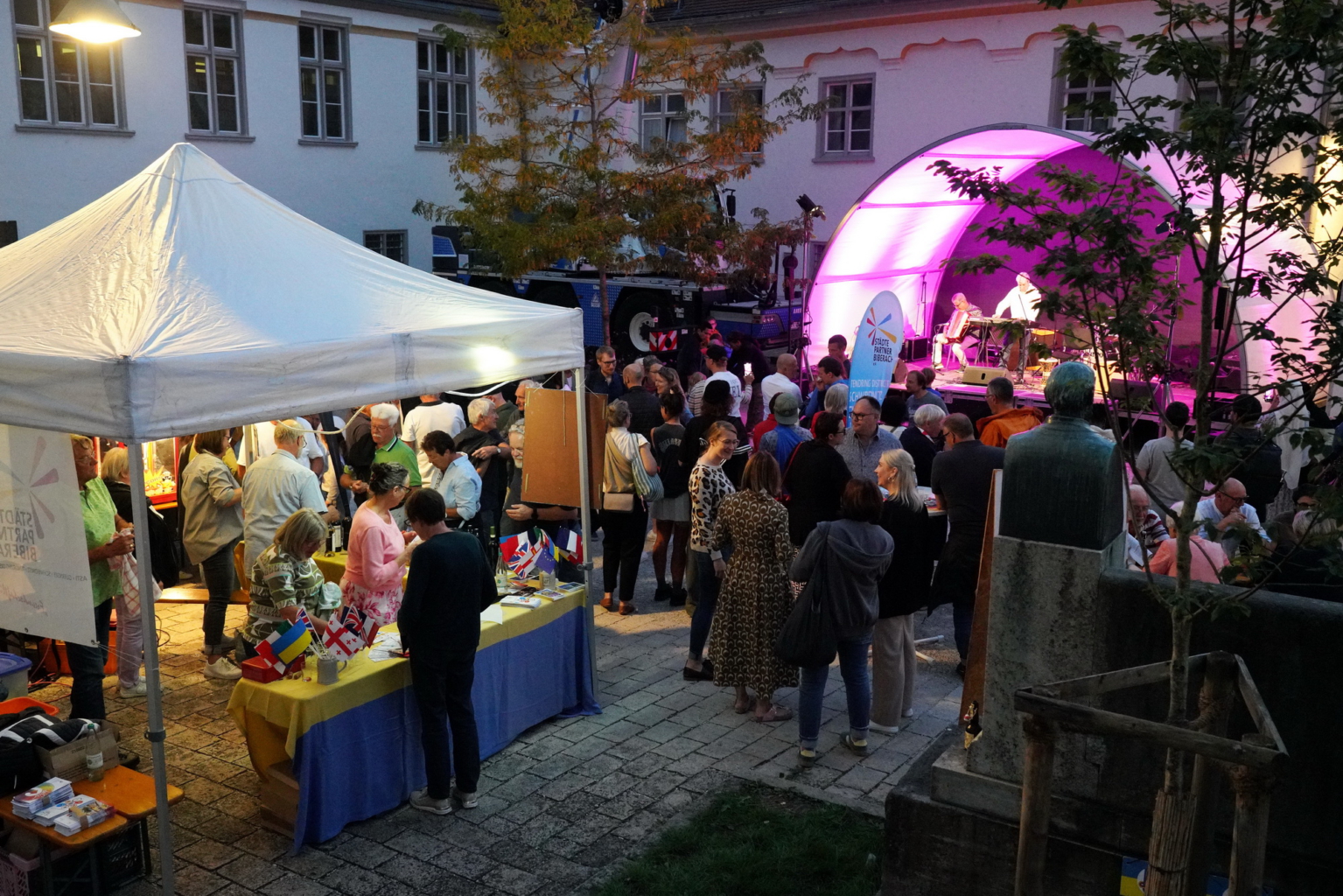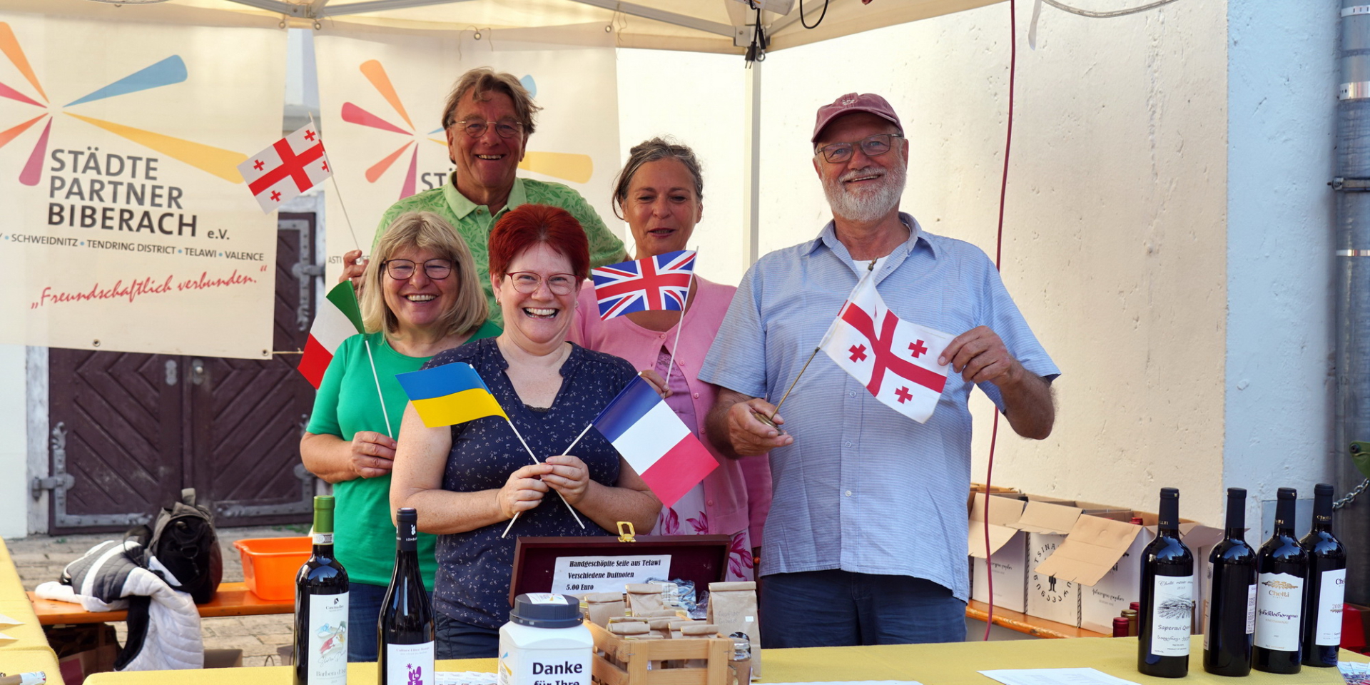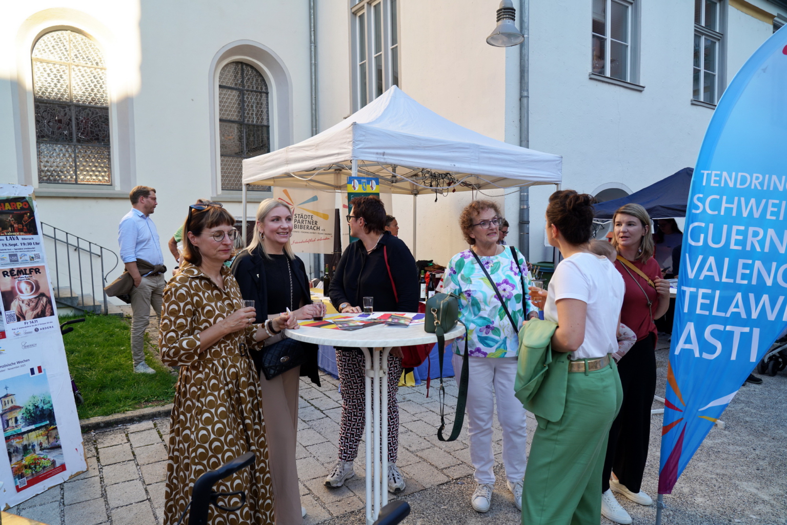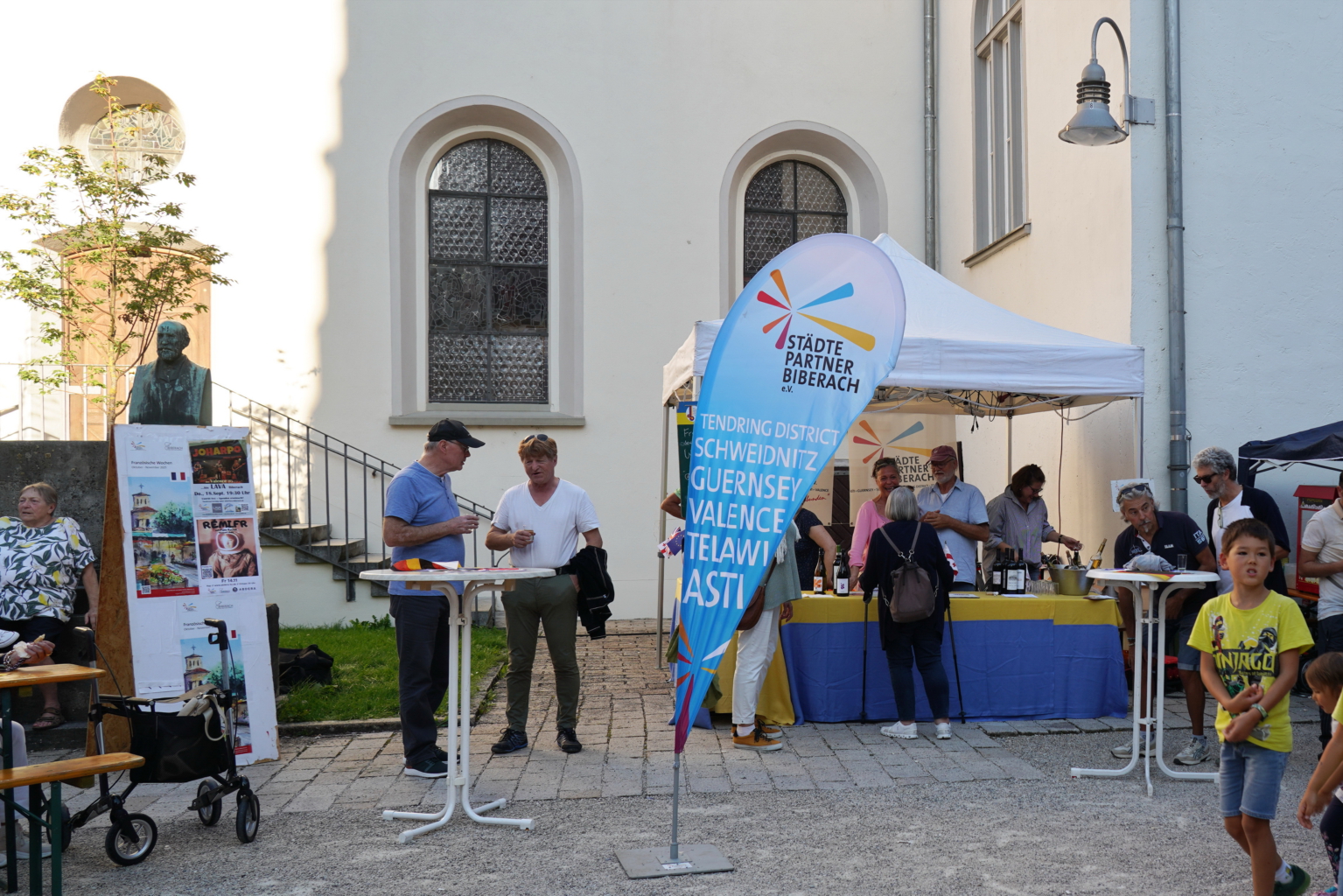 Am Stand selbst herrschte teils großer Andrang, die Flyer zu den Französischen Wochen fanden reißenden Absatz, es wurde über den StäPa und die Partnerstädte informiert, aber auch einfach nur in geselliger Runde g’schwätzt und dazu ein Gläsle der hervorragenden Weine aus Valence, Telawi und Asti verkostet.