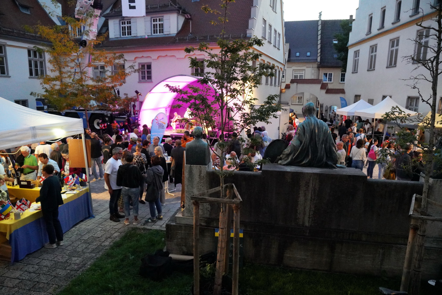 Aber doch eine Nachbemerkung zum Veranstaltungsort: Der Spitalhof ist eine tolle Location mit sehr angenehmer Atmosphäre. Ein Platz, auf dem sicher noch mehr stattfinden könnte. Allerdings ist er doch etwas versteckt und abgeschottet (was wiederum den Vorteil hat, dass z.B. Musik nicht so laut nach draußen dringt). Unserer Meinung nach gehört jedoch der Interkulturelle Markt, bei dem die kulturelle Vielfalt Biberachs und seiner Einwohner präsentiert wird, auf den zentralen Marktplatz, der doch um einiges „öffentlicher“ ist und auf dem man deutlich mehr „Lauf- und Zufallskundschaft“ erreicht!