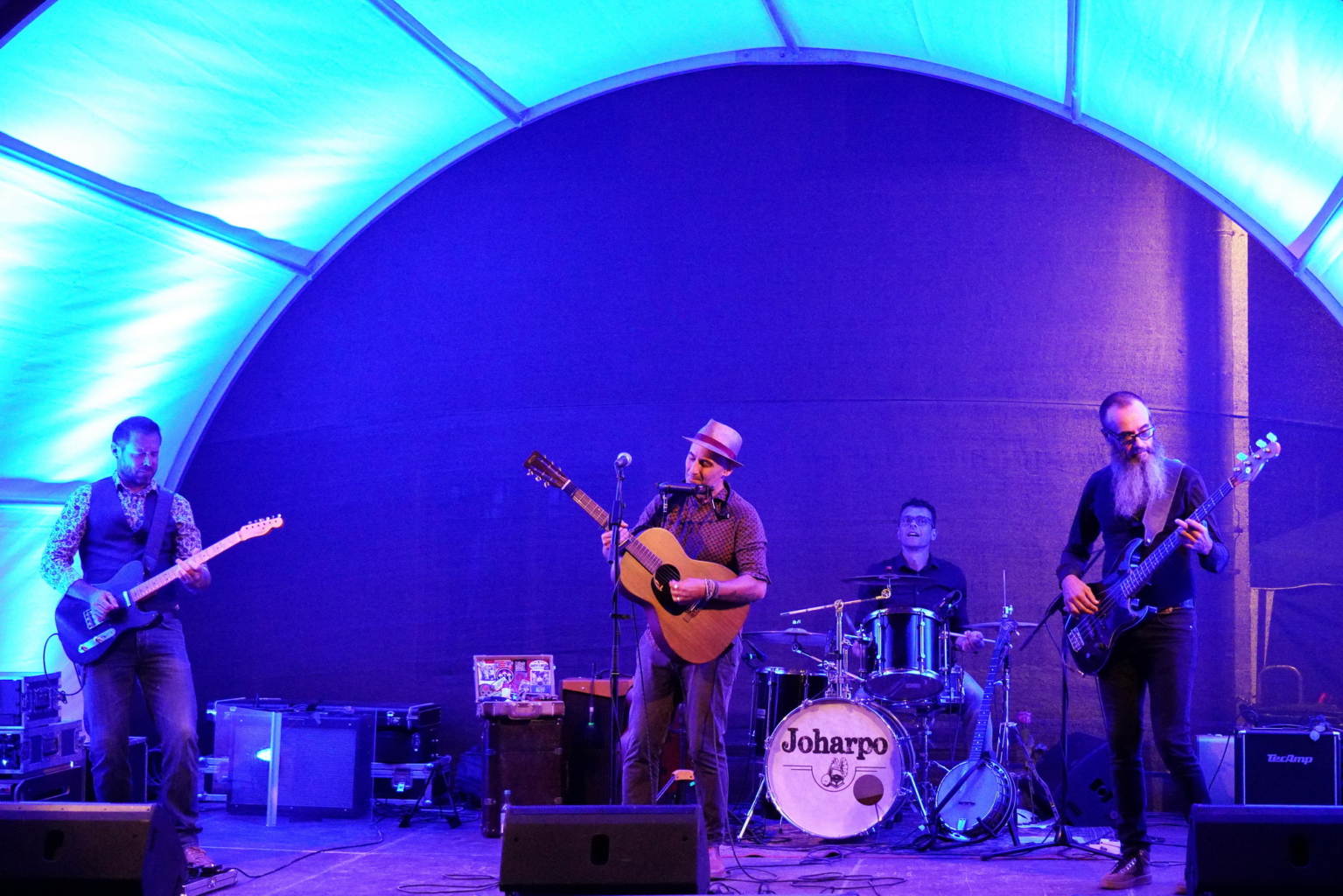 Es ist schon Tradition, dass der Städte Partner Biberach beim Interkulturellen Markt mit einem Infostand dabei ist. So auch in diesem Jahr, und heuer nicht nur mit einem Stand, sondern auch mit dem Valencer Bluesquartett Joharpo zusätzlich mit einem hochkarätigen Programmbeitrag. Wie schon am Vortag beim Auftritt im LAVA begeisterten die vier Jungs mit ihrer energiegeladenen Musik das Publikum, von Daniel Schmidberger bestens abgemischt.