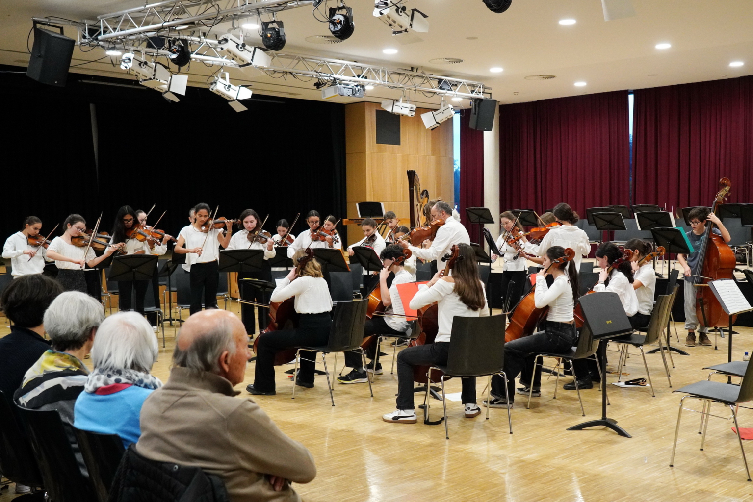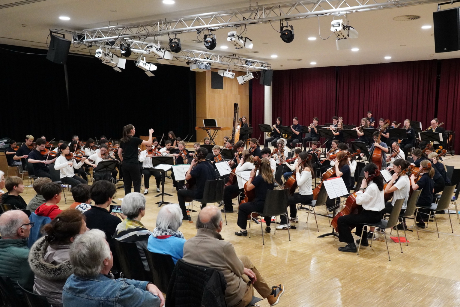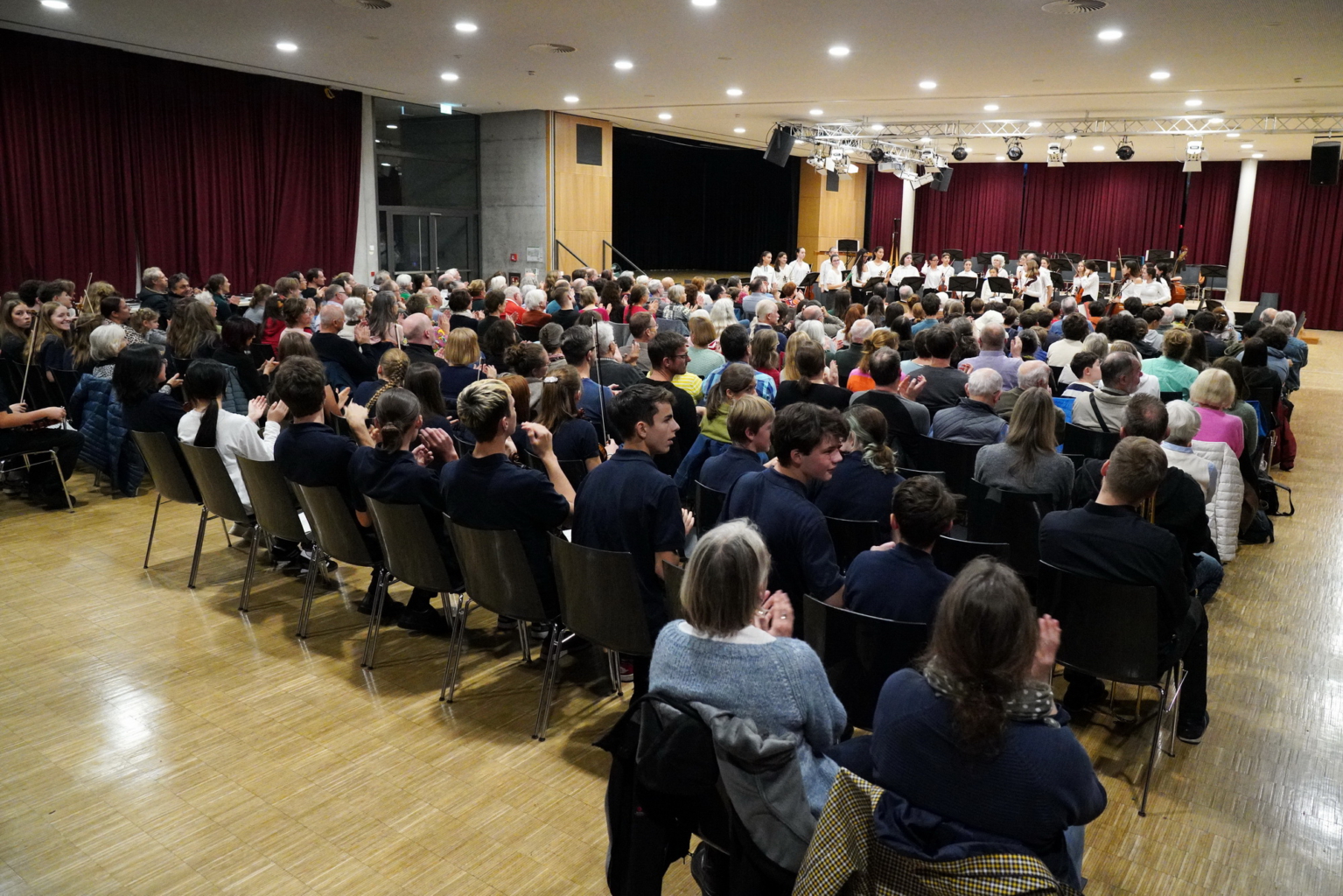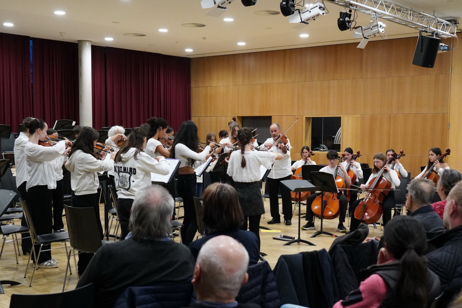 Höhepunkt der Woche war das gemeinsame Konzert am Freitag, den 31. Oktober, bei dem beide Orchester zunächst eigene Programme präsentierten. Zum Abschluss musizierten alle gemeinsam den „Marsch“ und den „Trepak“ aus Tschaikowskys Nussknacker-Suite – unter der Leitung von Chiara Tauber (JSO Biberach) und Gauthier Loden(Moderato Valence) – und wurden dafür mit großem Applaus belohnt.