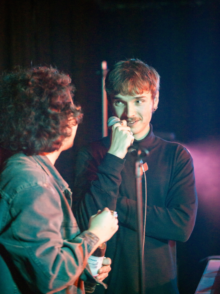 Den Auftakt des Abends übernahm die Sängerin Julie aus Berlin, begleitet von DJ und Produzenten Pablo Rochat. Ihr Auftritt war mehr als ein klassisches „Opening“ – er war ein energiegeladener Startschuss. Mit einem Stil, der Elemente aus den Zwanzigern, Jazz, Indie, Pop und Rap vereinte, brachte sie sofort Leichtigkeit in den Saal. Ihre erste Single „Weit Weit Weg“ begeisterte das Publikum sofort mit ihrem humorvollen und witzigen Charakter und sorgte für erste Schmunzler im Saal. Spätestens mit „Fiat 500“ brachte Julie die Stimmung endgültig zum Kochen: angelehnt an den Indie-Stil, präsentierte sie den Song so, dass er perfekt zum rhythmischen Bewegen einlud. Die Zuschauer schnipsten im Takt, schwangen die Hüften und ließen sich von der Leichtigkeit der Musik zum Tanzen mitreißen.