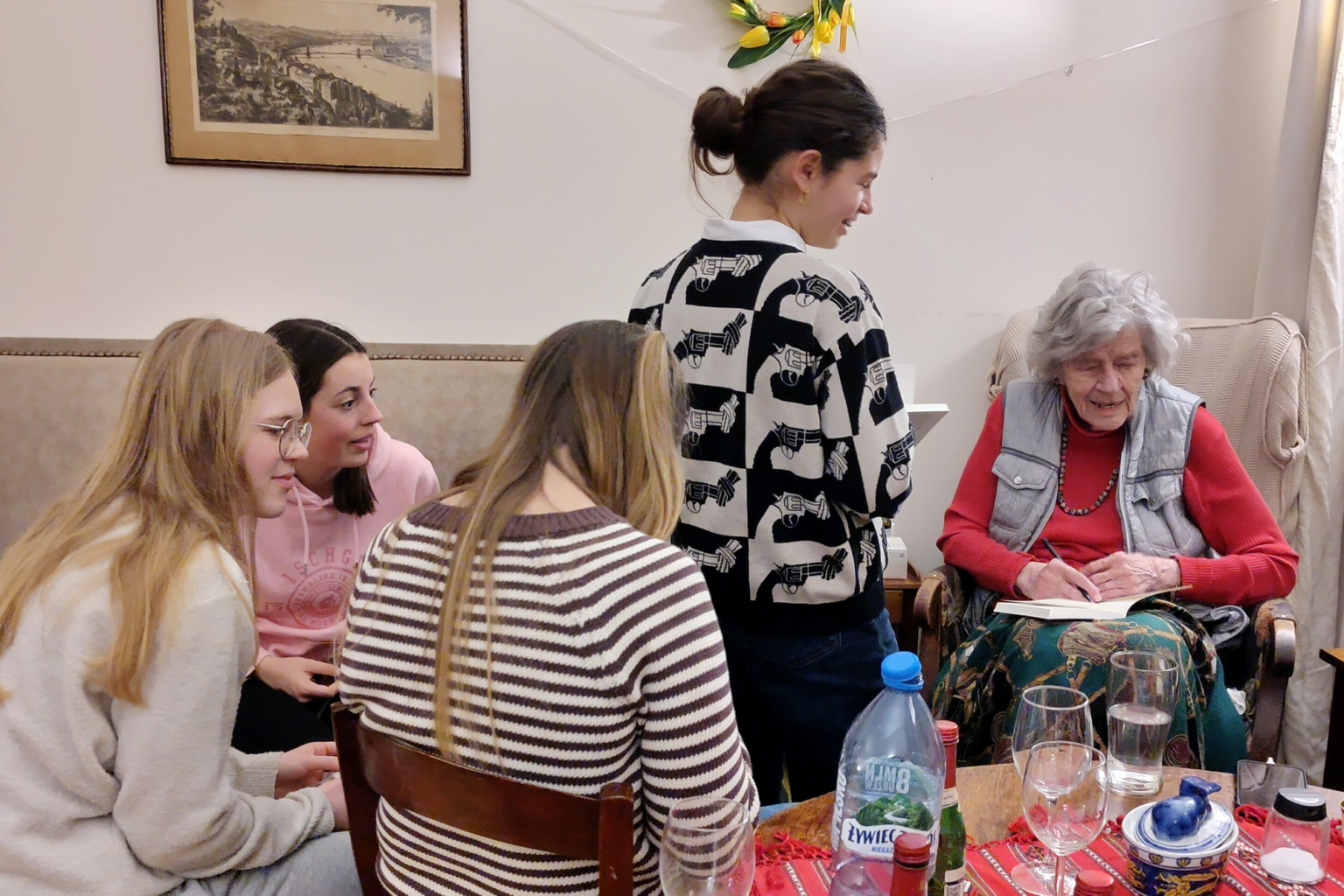 Ein besonderer Programmpunkt war das Gespräch mit der Zeitzeugin Melitta Sallai, die noch heute im Schloss Morawa lebt und deren Familie das Schloss früher besaß. Heute gehört es der St.-Hedwig-Stiftung. Ihre Erinnerungen gaben uns einen persönlichen Einblick in die Geschichte des Ortes.