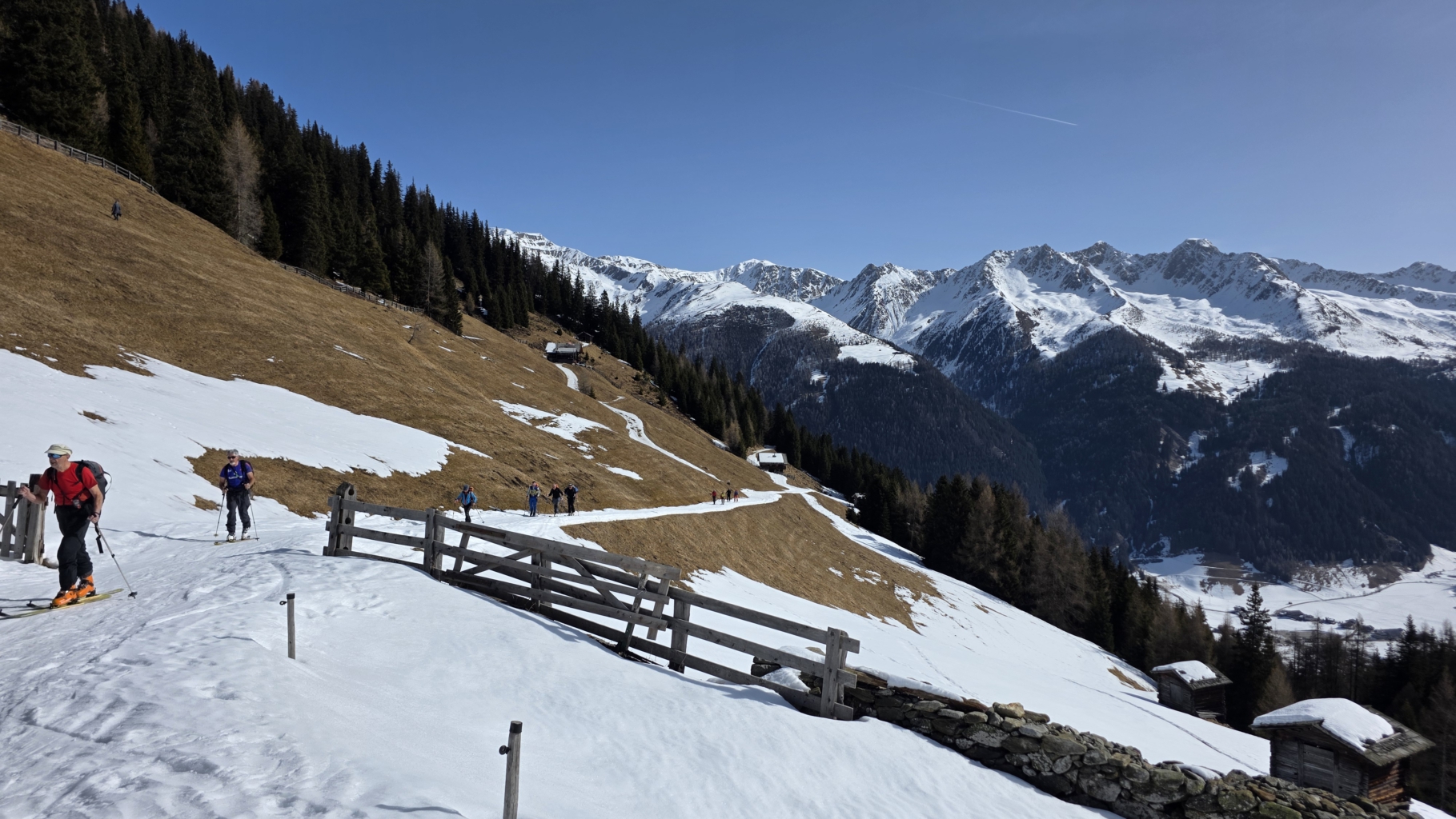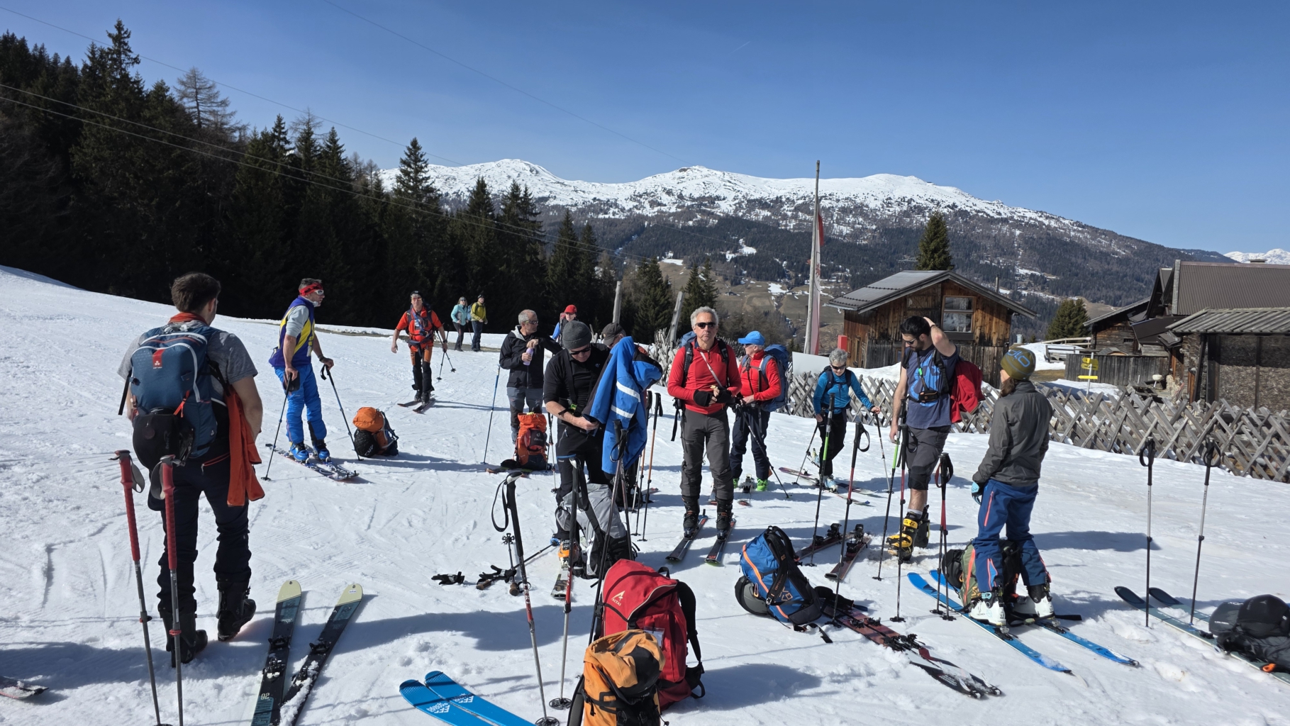 Dieses Jahr ging es nach Sankt Magdalena ins Gsiesertal im italienischen Südtirol. Am Anreisetag traf sich die Gruppe direkt am Brenner, um vom österreichischen Gries am Brenner auf den 2115 m hohen Sattelberg (900 hm Differenz) zu gehen. Die Skibergsteiger wurden mit schönstem Bergwetter und ausreichend Schnee, sowie einem ersten Rundumblick auf die Berge im Grenzgebiet zwischen Österreich und Italien belohnt. Bevor die Anfahrt zur Unterkunft ins Gsiesertal, einem Seitental vom Pusteral angetreten wurde, gab es noch eine kleine Merenda (Vesper) mit selbstgebackenem Jubiläumskuchen.