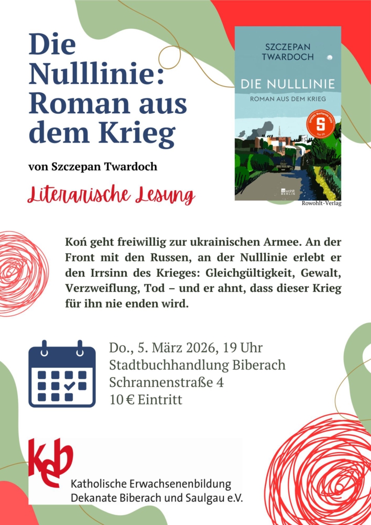Zusammen mit und in der Stadtbuchhandlung Biberach werden wir am Donnerstag, den 5. März 2026, 19 Uhr, eine Lesung aus dem im vergangenen April erschienen Roman „Die Nulllinie“ des polnischen Autoren Szczepan Twardoch veranstalten. Der eintritt beträgt 10 Euro.